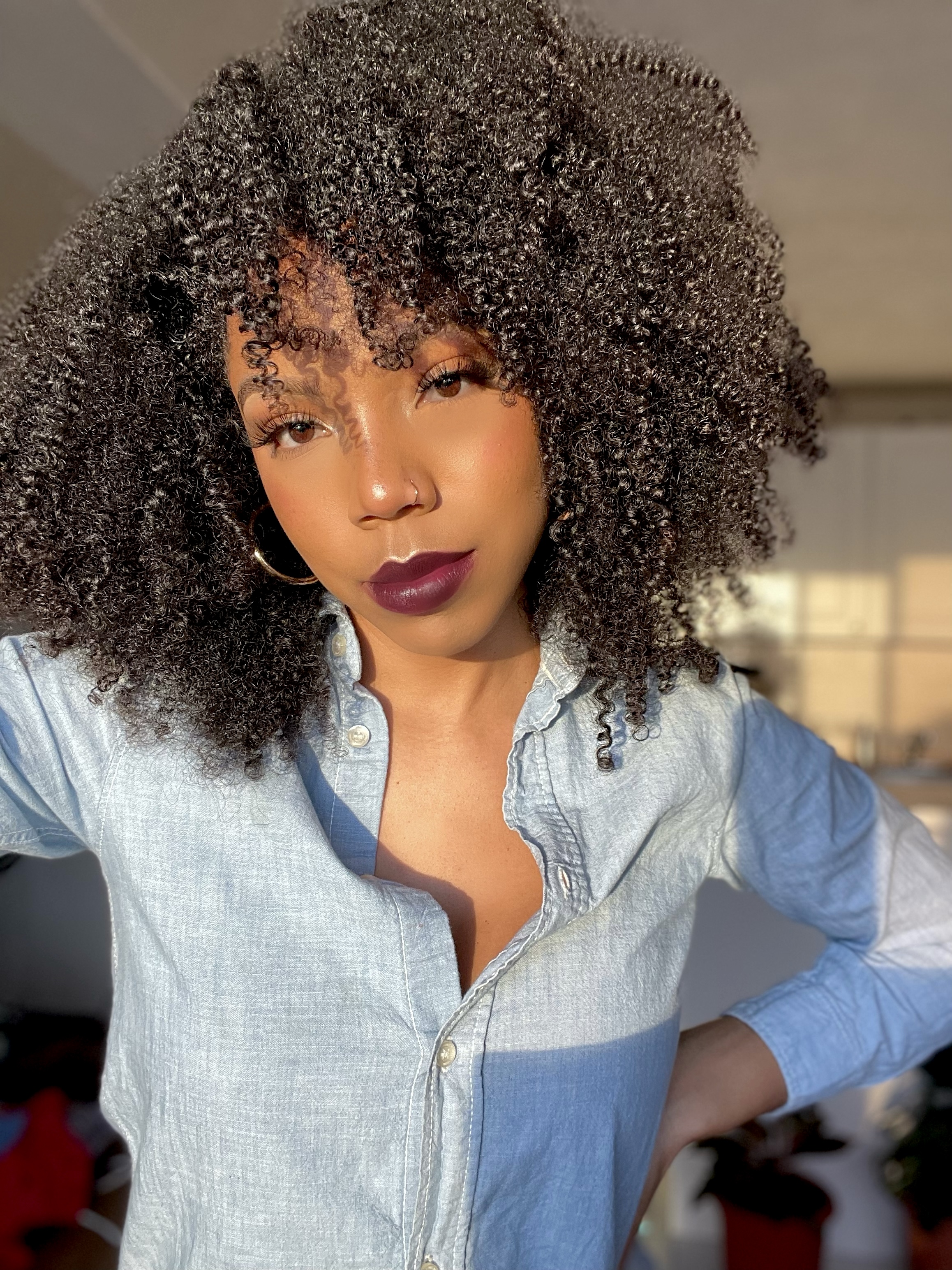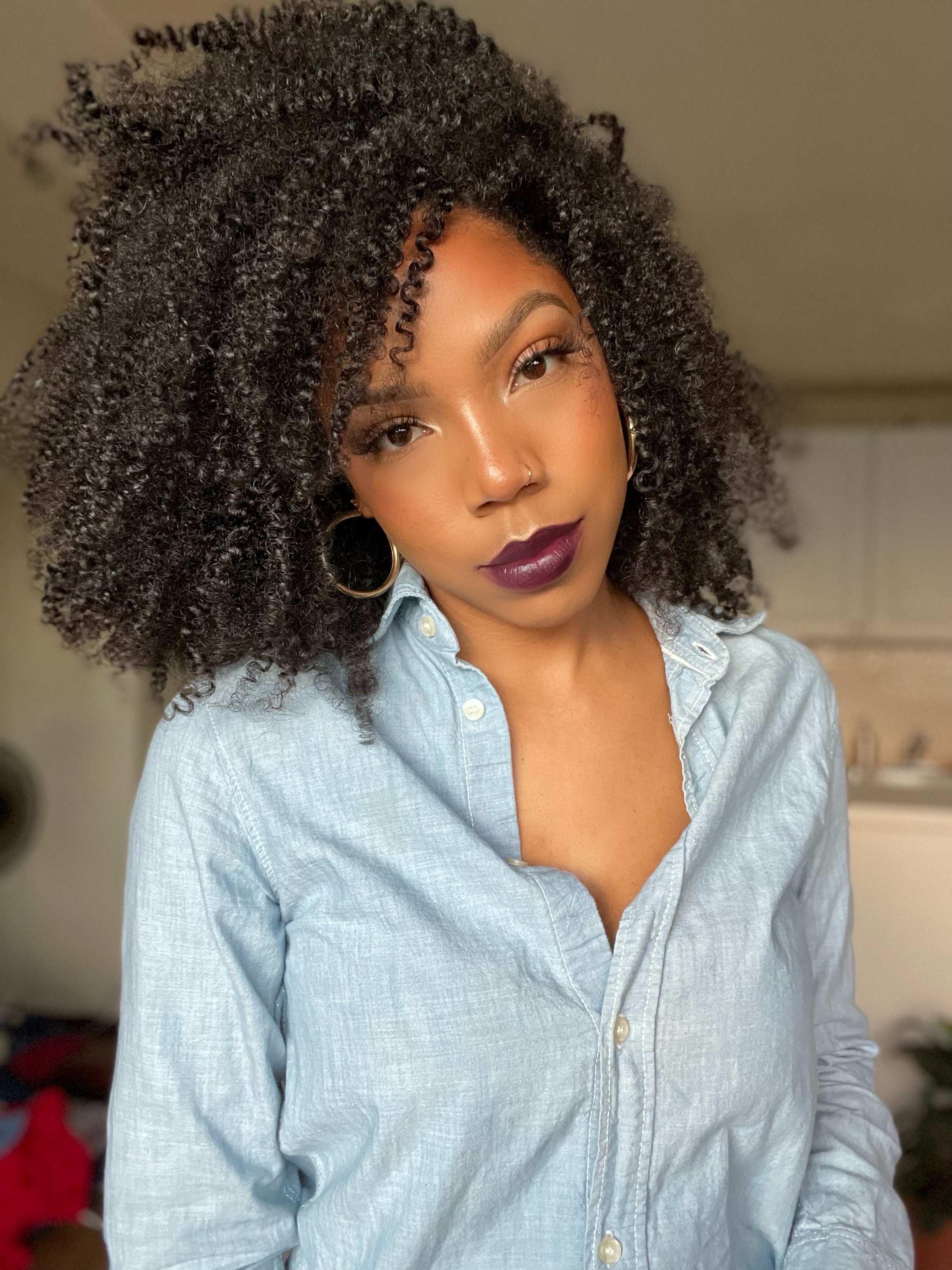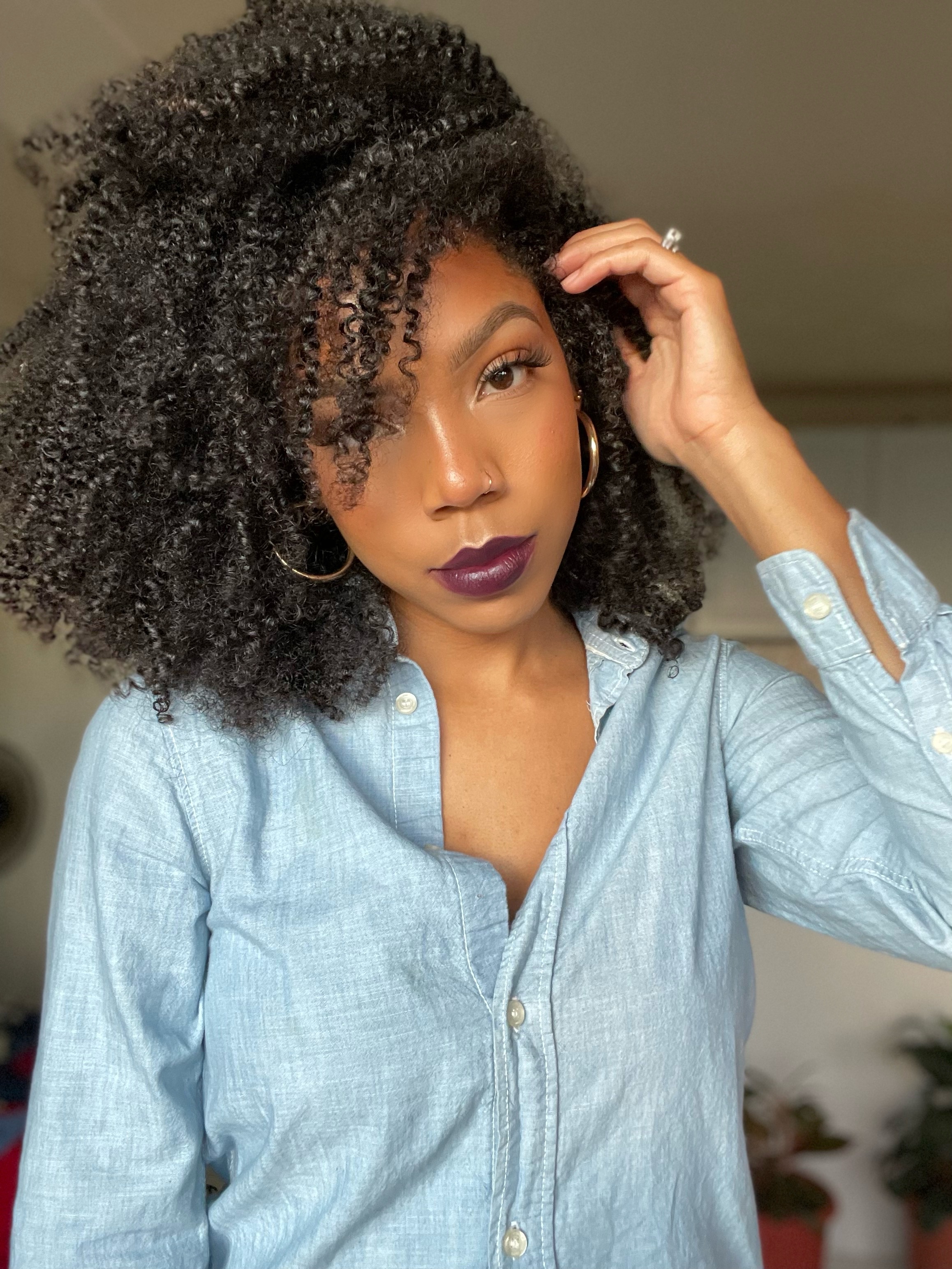 I wash my hair in four sections focusing on the roots. I usually wash each section twice. After detangling my hair with a wide-tooth comb using the miracle moist conditioner, I do not utilize any other hair tools to achieve this look. I apply the deep conditioner to my hair for 20 minutes, sometimes overnight. After rinsing it out, I apply the leave-in conditioner to each section and then apply the gel using the shingling method. I spray water on sections that may become dry during the process. It is important to style your hair when it is soaking wet. I then apply mousse and allow my hair to air dry. I do not apply heat to my wash n’ go’s. To maintain this style, I sleep with my hair in a pineapple using a silk scarf. For me, this style lasts 1 week.